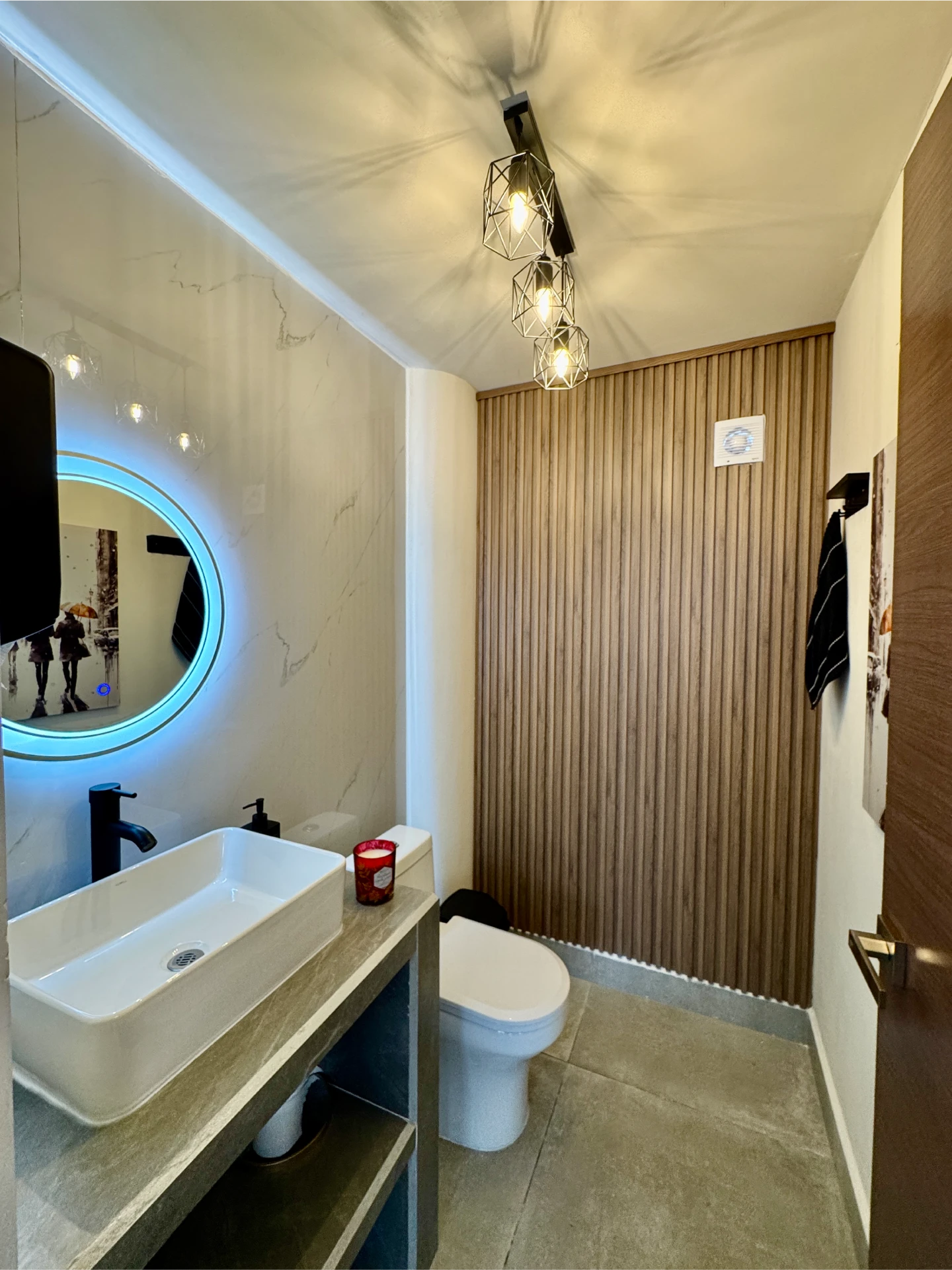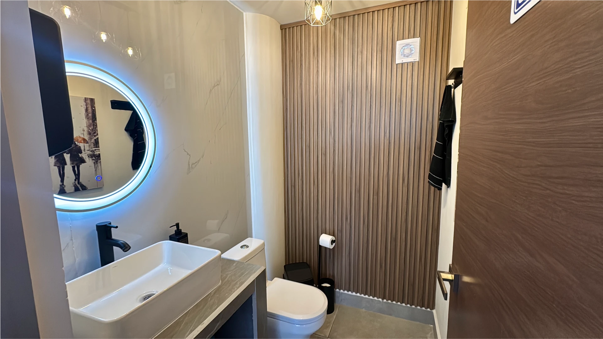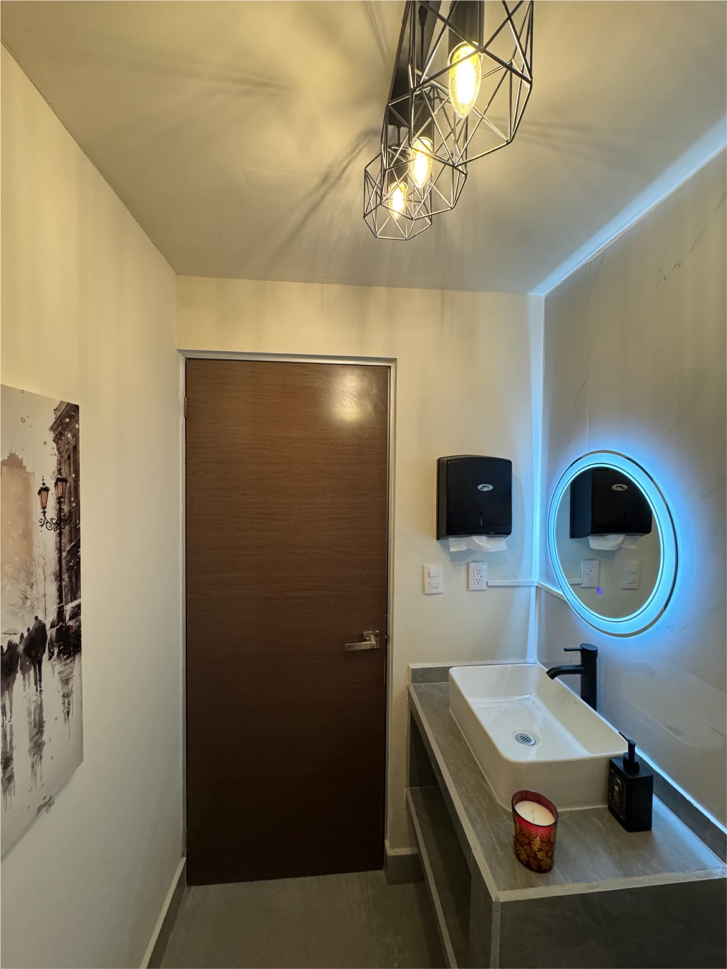 El salón cuenta con un baño unisex, limpio y cómodo, apto para hombres y mujeres.